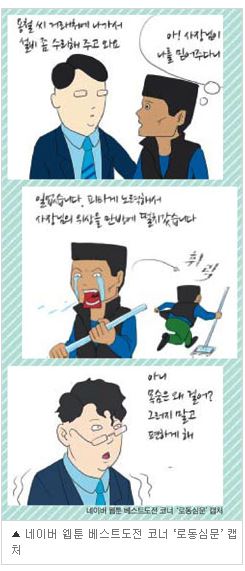 "분단된 南北 문화 장벽 허무는 공감 웹툰 만들어갈래요" 사장 : "용철씨, 설비 좀 수리해 주고 와요." 용철 : "알갔습니다! 목숨 바쳐 무조건 완수하갔습니다." 사장 : "아니 목숨은 왜 걸어? 편하게 해!" 네이버 베스트도전 코너에 연재 중인 웹툰 '로동심문의 한 장면이다. 탈부자인 용철이 겪는 좌충우돌 이야기를 통해 남북의 문화 차이를 소개한 이 웹툰의 인기는 그야말로 뜨겁다. 정식으로 연재되는 웹툰은 아니지만, 회당 조회 수가 평균 2만건을 꾸준히 기록할 정도다. '로동심문'을 탄생시킨 장본인은 국내 첫 '탈북 웹툰 작가' 최성국(36)씨다.