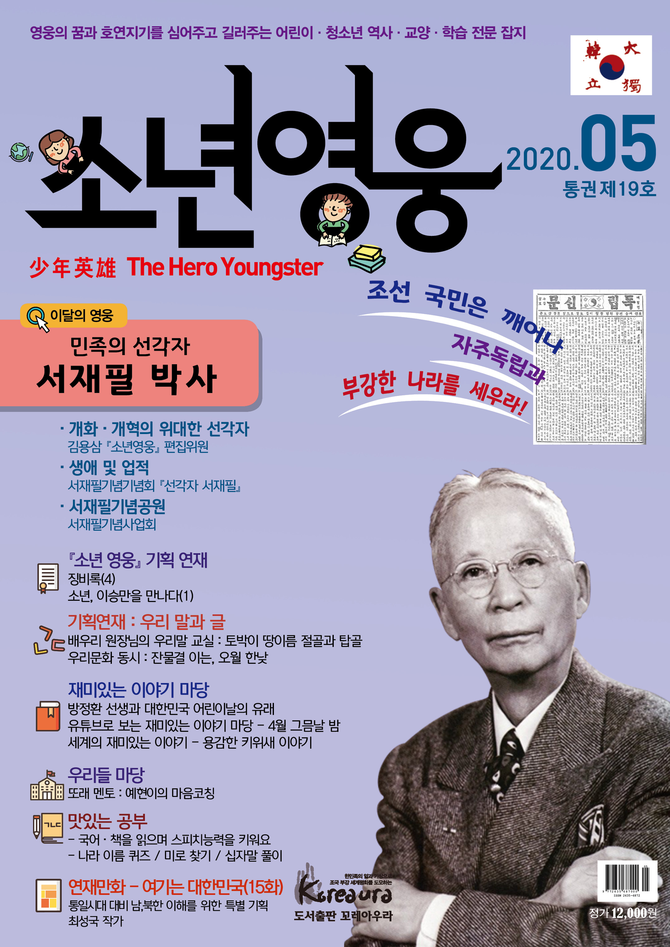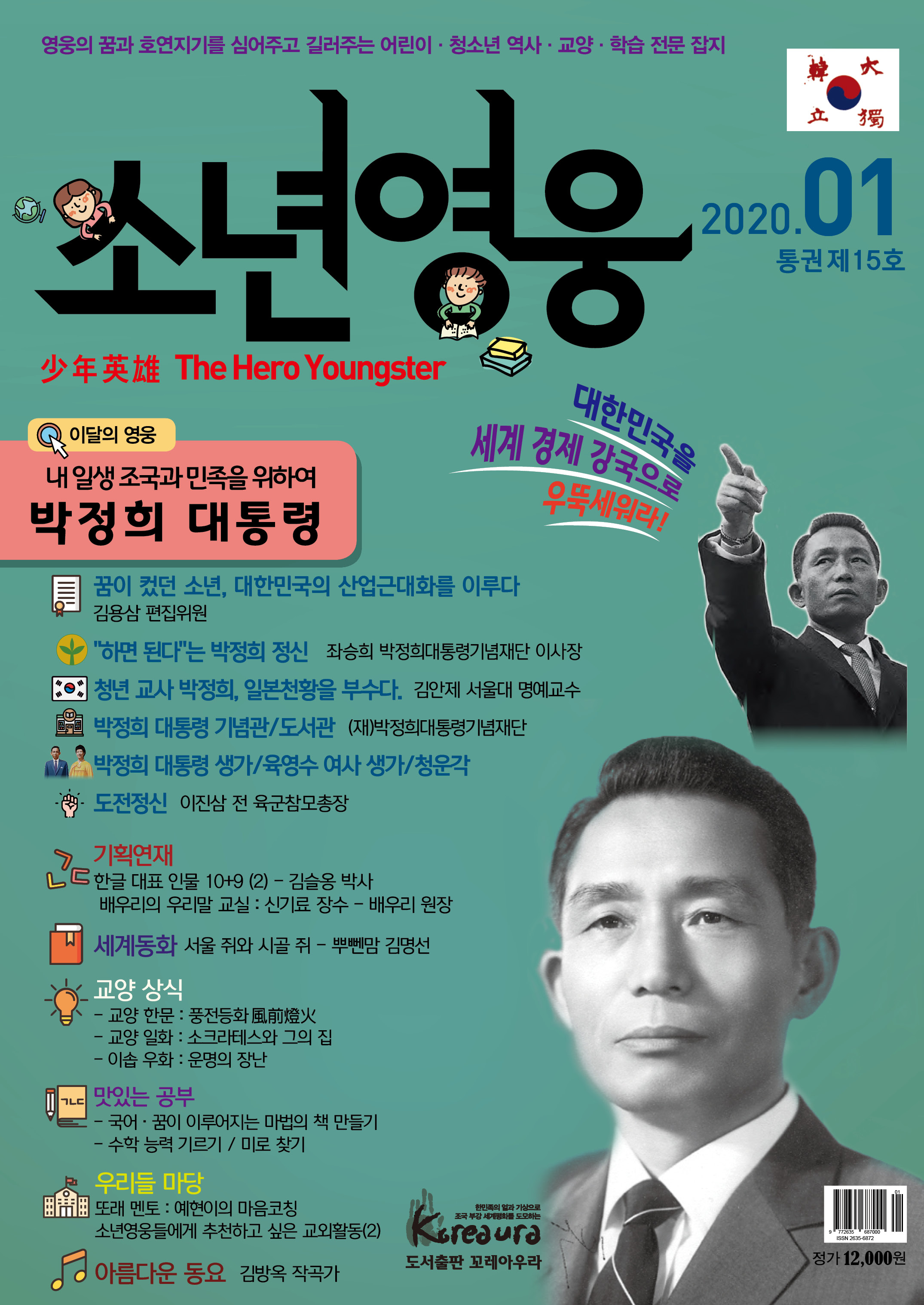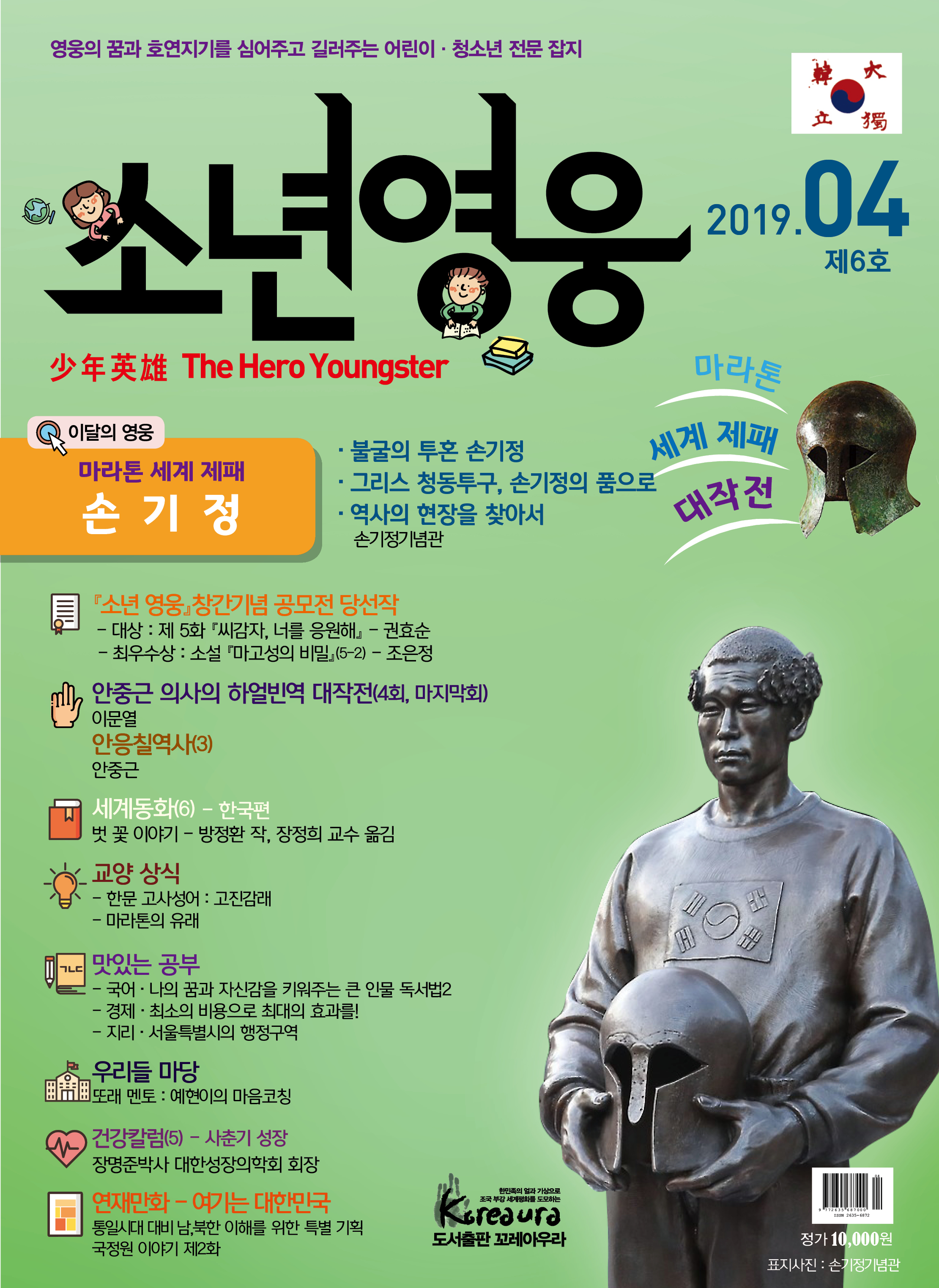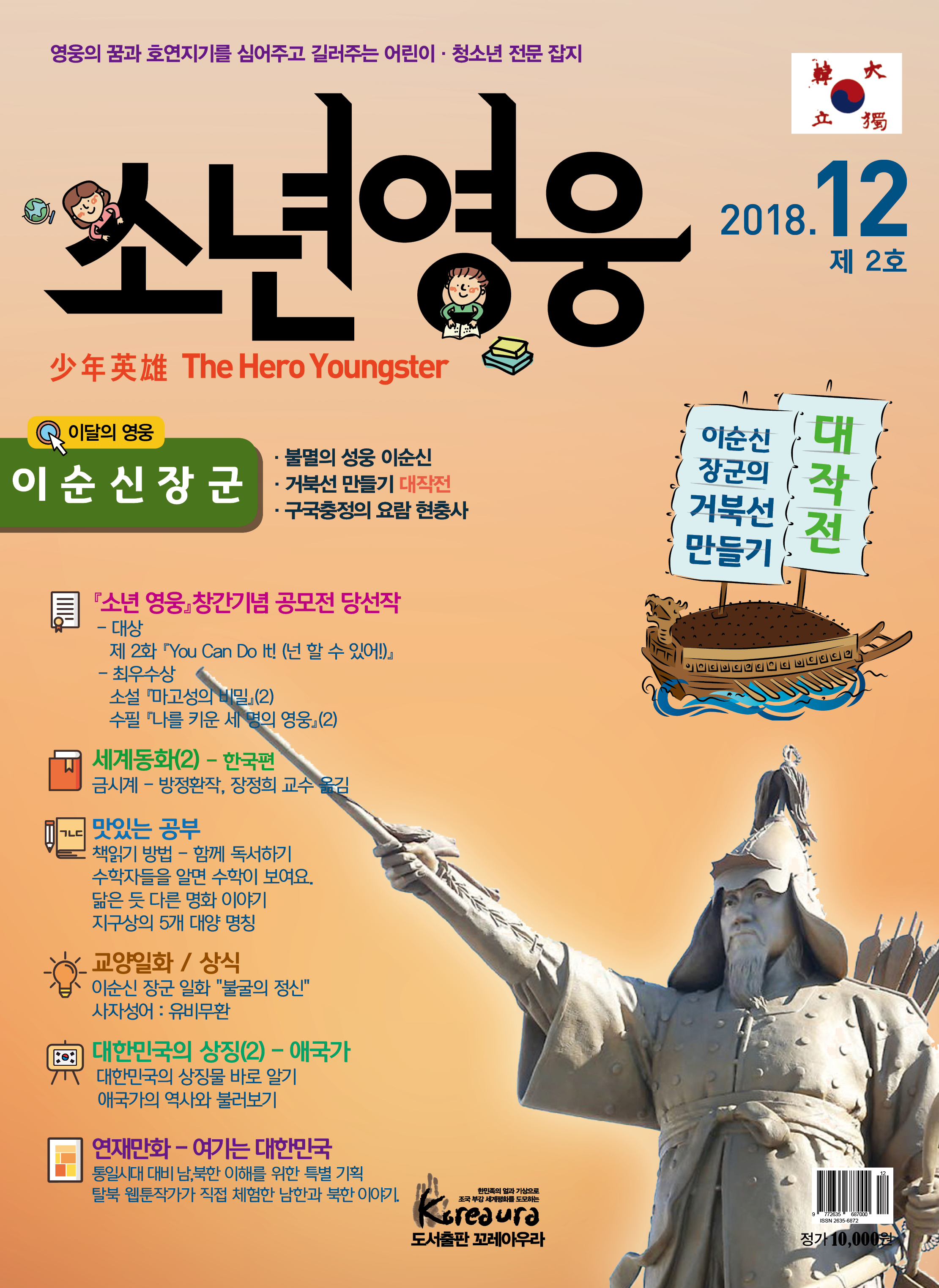 도서출판 꼬레아우라는 월간 『영웅』 창간 3주년 을 맞아 대한민국의 100년, 1000년 대계를 위 해, 내일의 대한민국 주인공인 어린이·청소년 의 가슴에 미래에 대한 무한한 꿈과 포부, 호연 지기를 품게 하고, 인성이 형성되는 어릴적부터 나라 사랑하는 마음, 올바른 역사관, 세계관을 심어 주기 위한 어린이·청소년 전문 잡지 월간 『소년 영웅』을 창간합니다. |