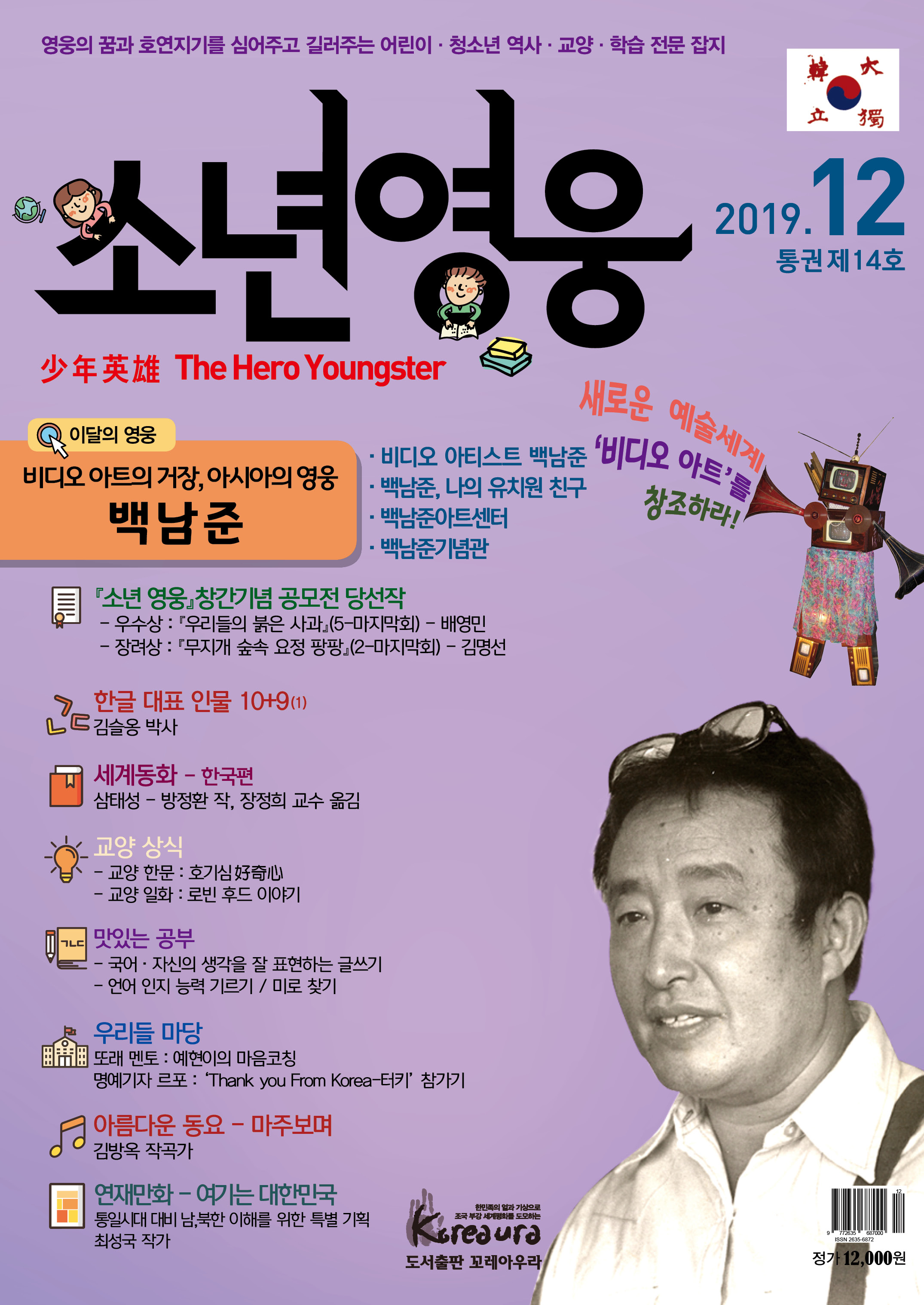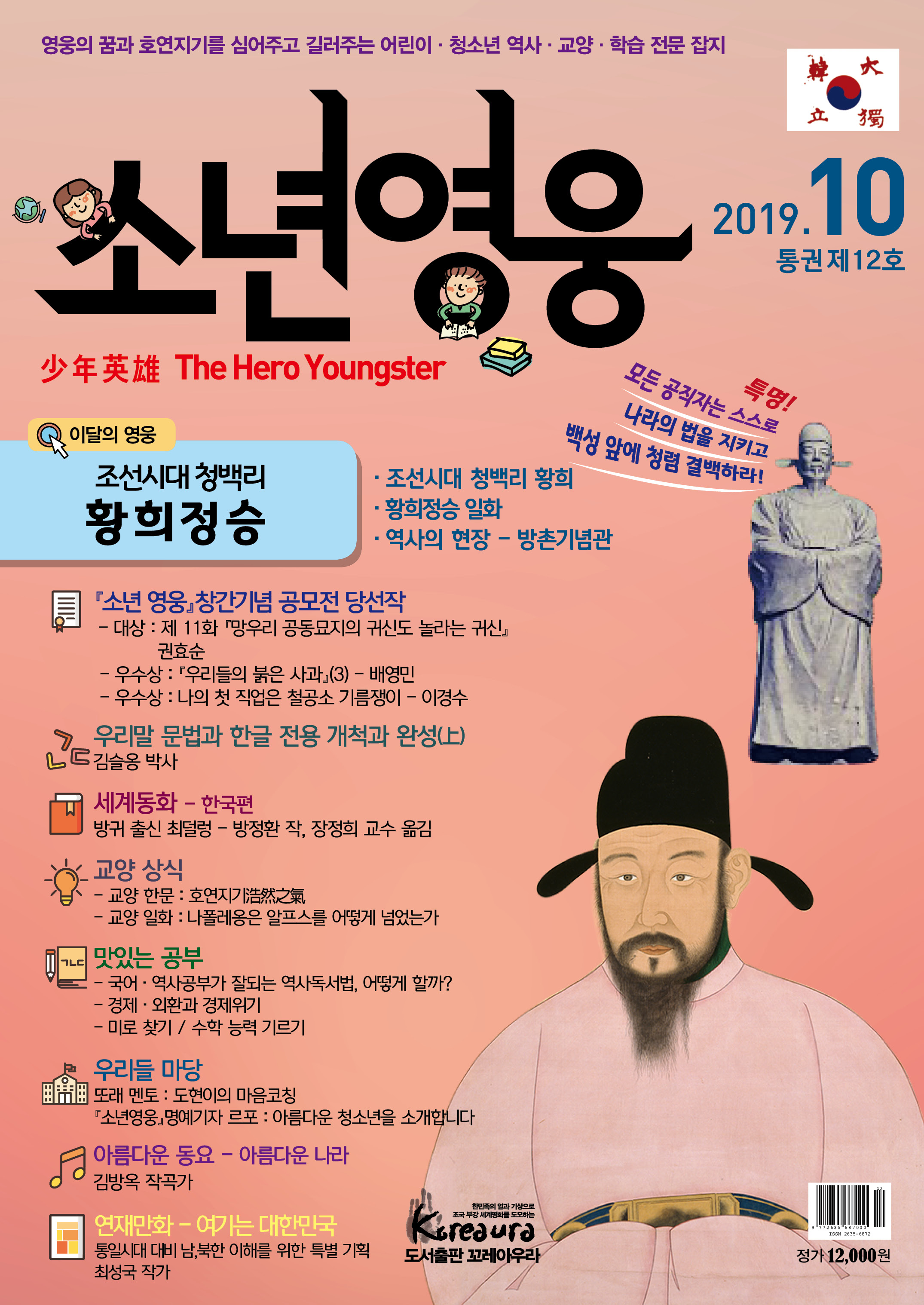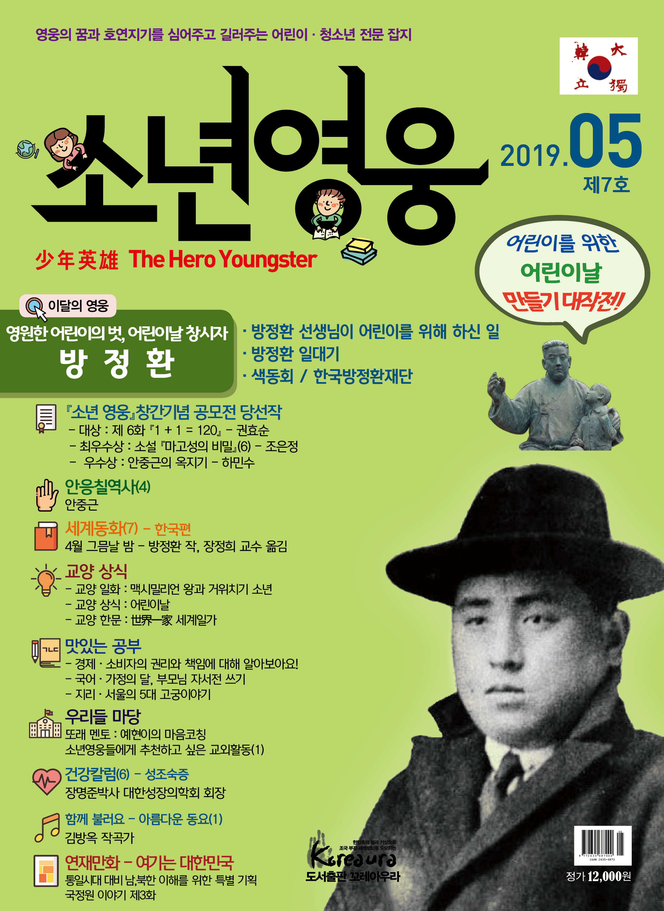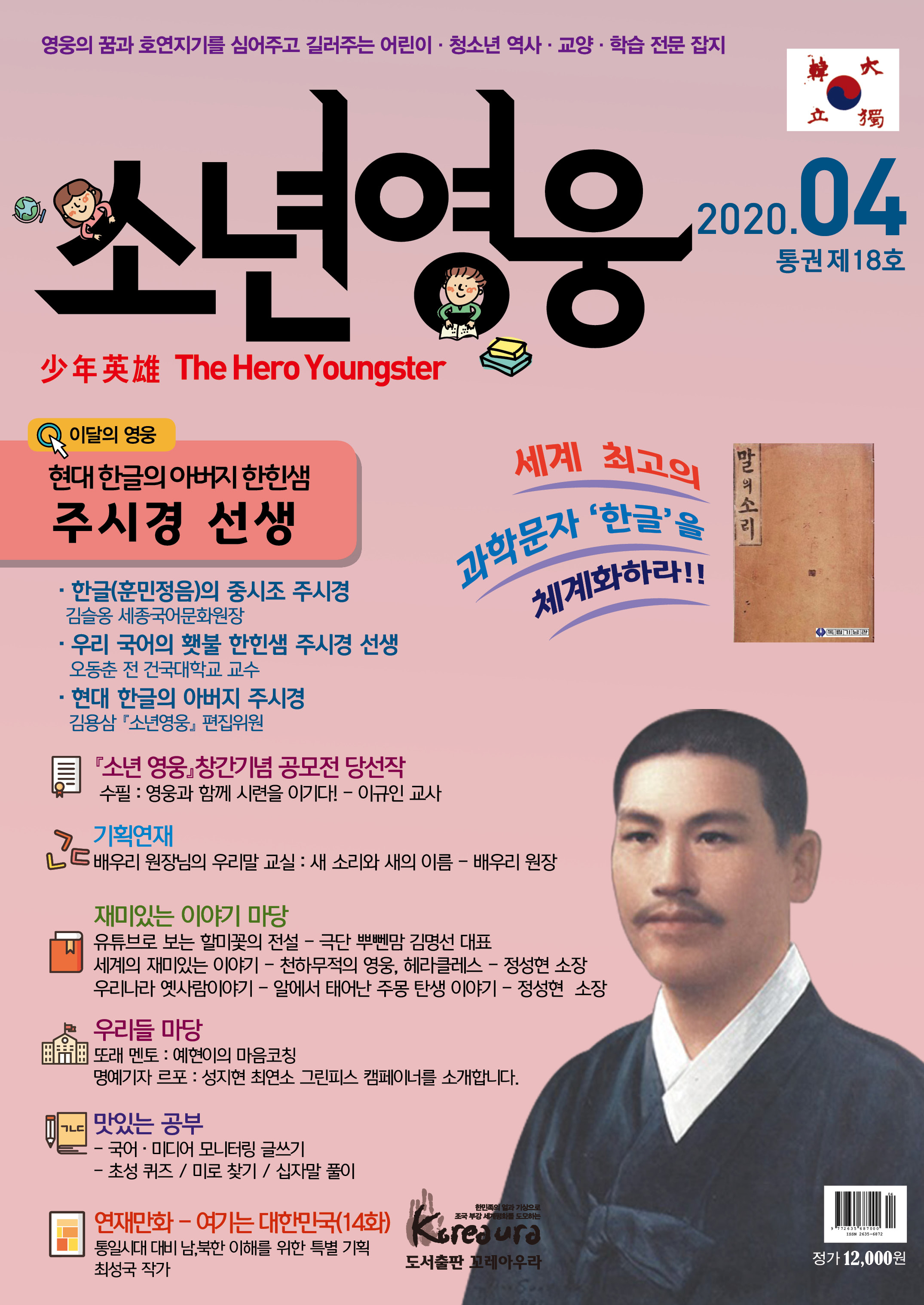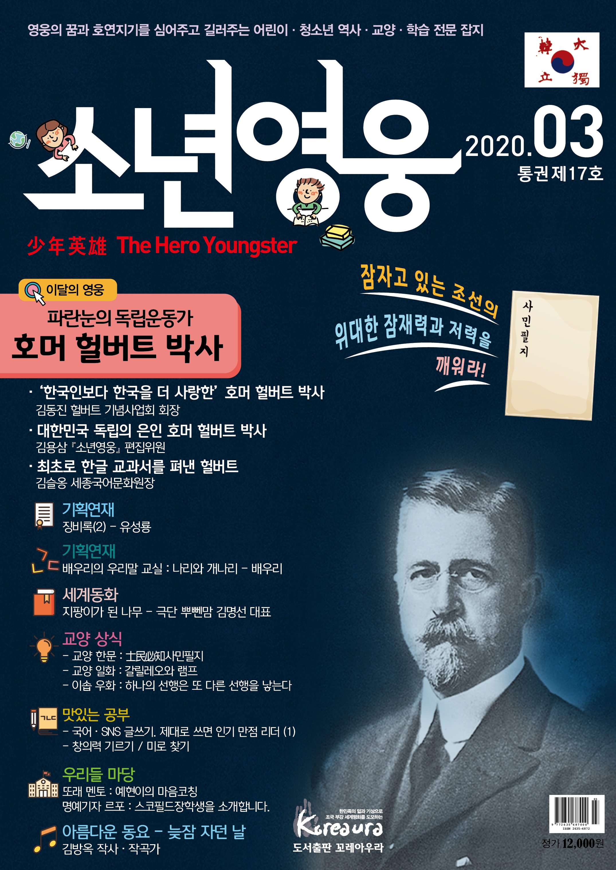 도서출판 꼬레아우라는 월간 『영웅』 창간 3주년 을 맞아 대한민국의 100년, 1000년 대계를 위 해, 내일의 대한민국 주인공인 어린이·청소년 의 가슴에 미래에 대한 무한한 꿈과 포부, 호연 지기를 품게 하고, 인성이 형성되는 어릴적부터 나라 사랑하는 마음, 올바른 역사관, 세계관을 심어 주기 위한 어린이·청소년 전문 잡지 월간 『소년 영웅』을 창간합니다. |